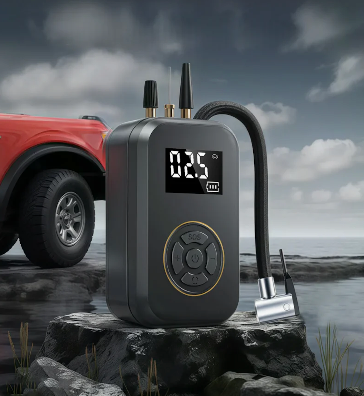 The Miracle Air is a compact, lightweight, and powerful portable air pump designed to quickly and efficiently inflate tires, sports balls, and more. Perfect for on-the-go use, Miracle Air features a built-in digital display, preset pressure options, and an easy-to-use interface. With a rechargeable battery and fast inflation speeds, it’s the ultimate tool for drivers, cyclists, and athletes alike. Never get stuck with a flat tire or deflated ball again. Keep Miracle Air in your car or backpack for peace of mind.